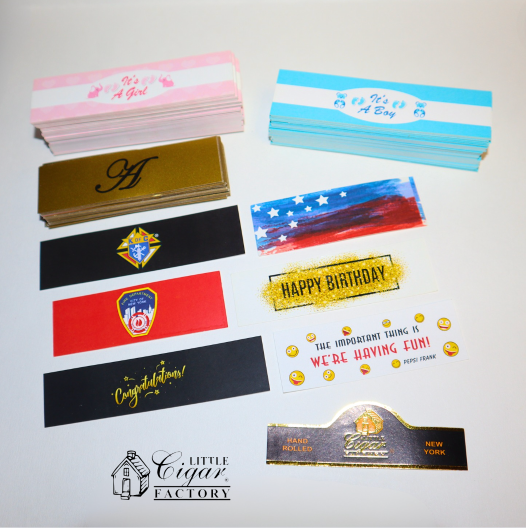 We can unique custom cigar bands featuring your Initials, Congratulations, Gender Reveal (Name, DOB, Weight), Event Specific Logos, and much more.